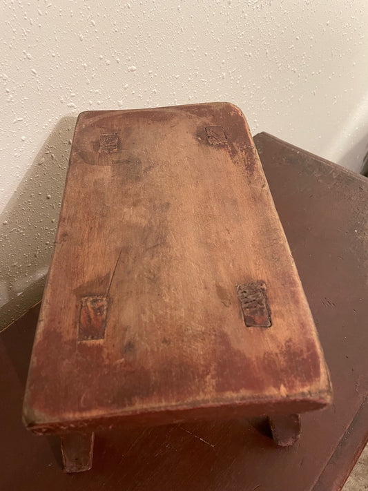 Early Cricket Stool in Original Red/Brown Paint, Mortise Construction