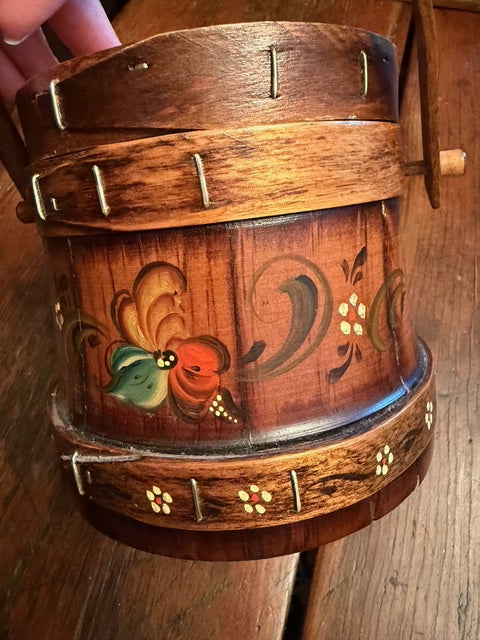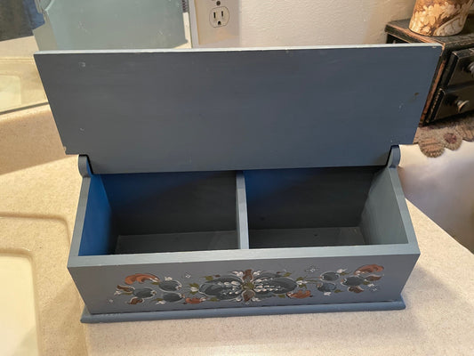 Sold outFolk Art Rosemaled Blue Lidded Box