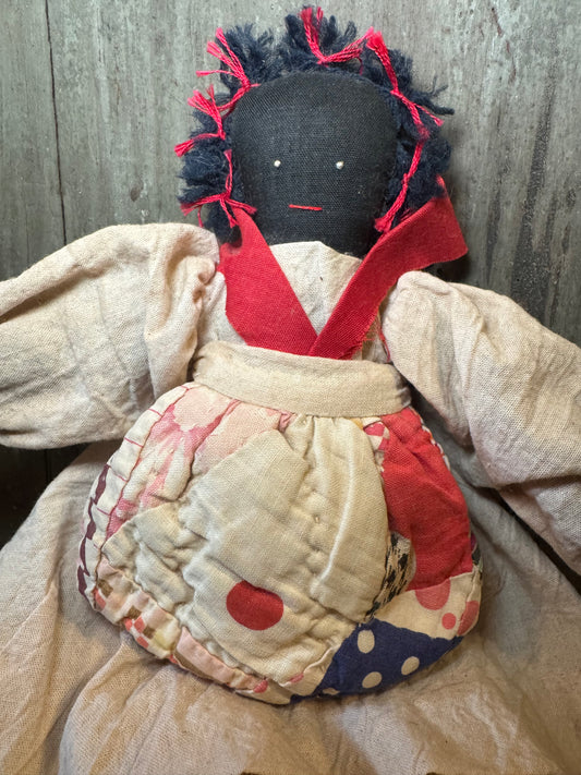 Handmade African American Cloth Doll with Patchwork Quilt Apron