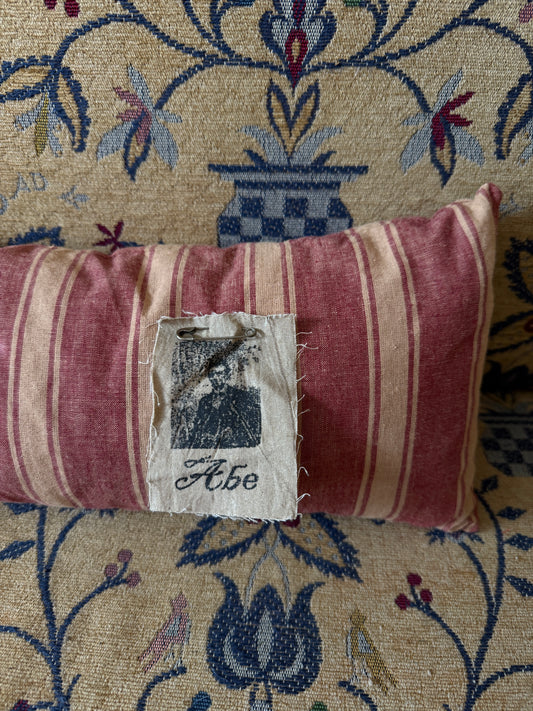 Red Striped Straw Filled Bolster Pillow with Abe Lincoln Photo