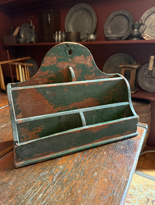 Early Green Caddy~Primitive Wall or Countertop Letter Holder