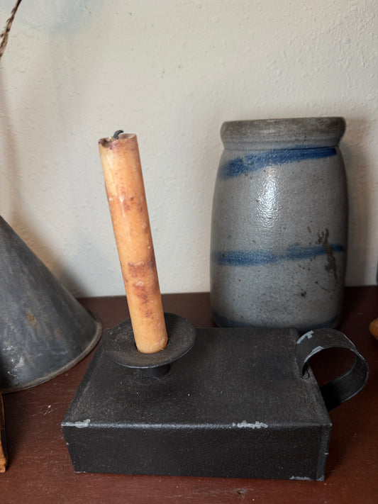 Reproduction Tall Tin Candleholder with Candle