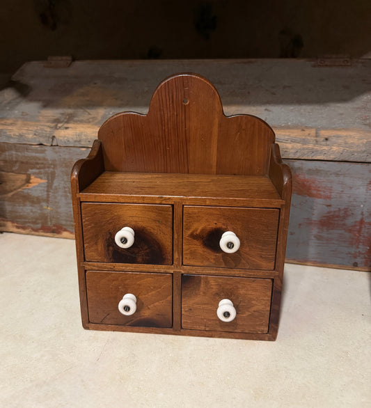 Early 1900s 4-Drawer Spice Cabinet with Scalloped Top