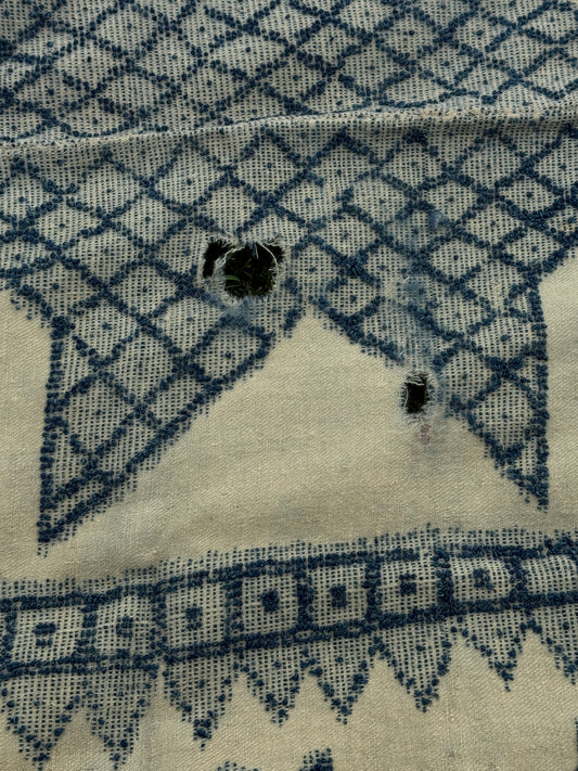 Late 1800s Handwoven (Blue/White) Pennsylvania Dutch or Appalachian Wool Coverlet