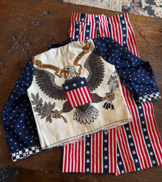 Handmade Child’s or Large Doll Patriotic/4th of July 2-piece 1970s Outfit with Eagle Motif on Back