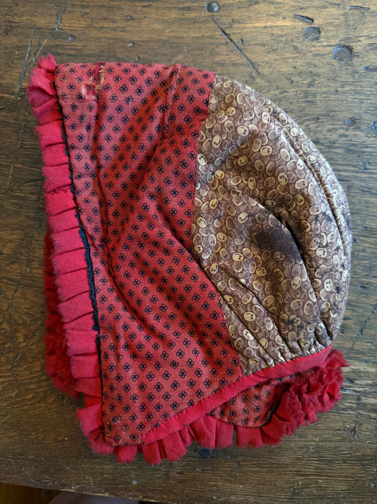 Civil War Era Red & Brown Calico Winter Bonnet For Child or Young Woman