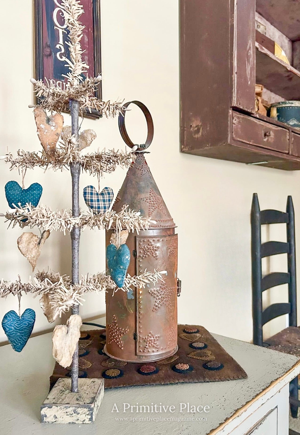 Home tours filled with early antiques, folk art, stitched hearts, and stories of love that have stood the test of time.