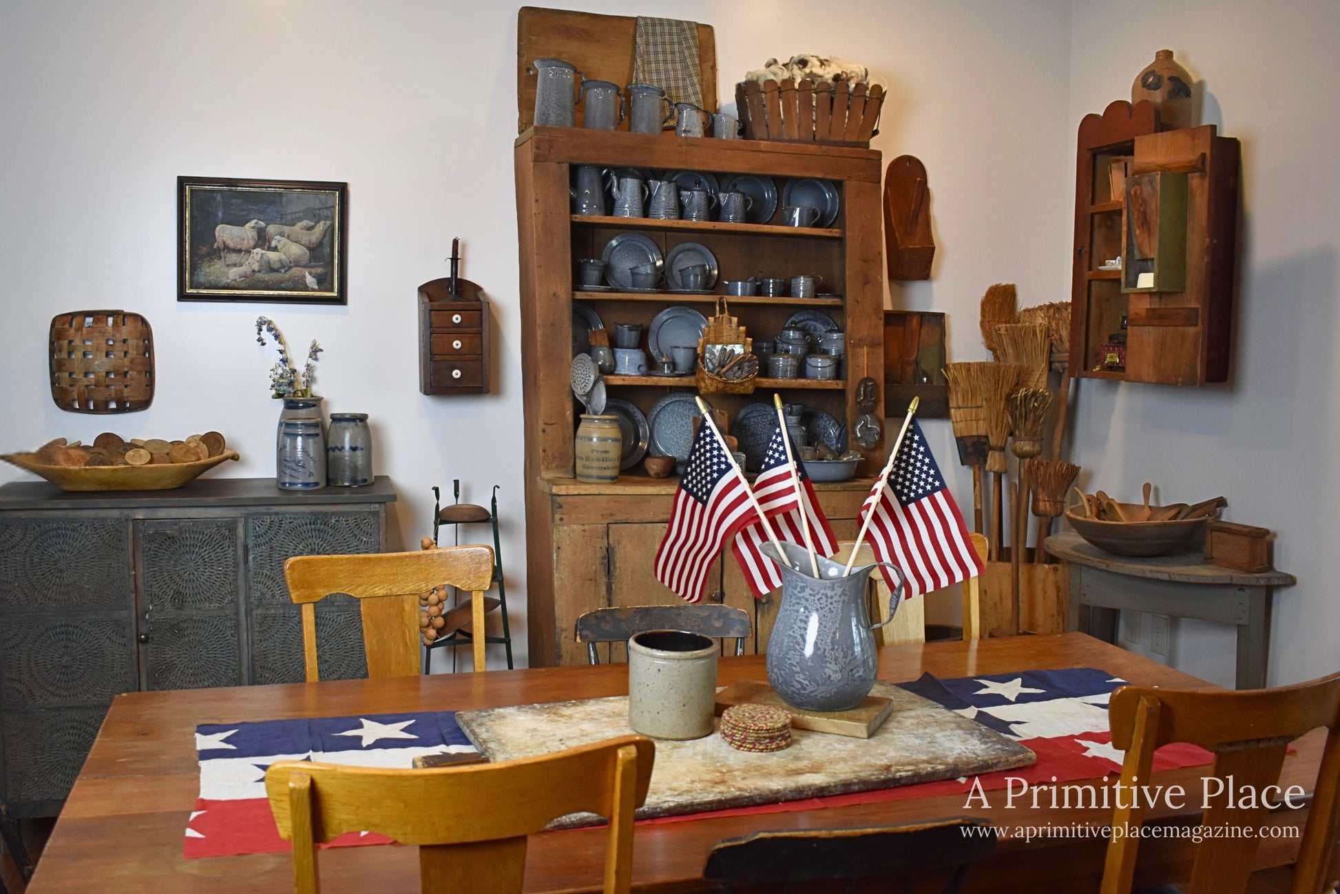 “A Shift in Taste: From Pristine to Patina”: After an evolution in taste, Scott and Cindy Kappes have traded pristine perfection for timeworn surfaces. Once graniteware collectors in search of flawless pieces, they now embrace the cracks, wear, and patina of primitives.