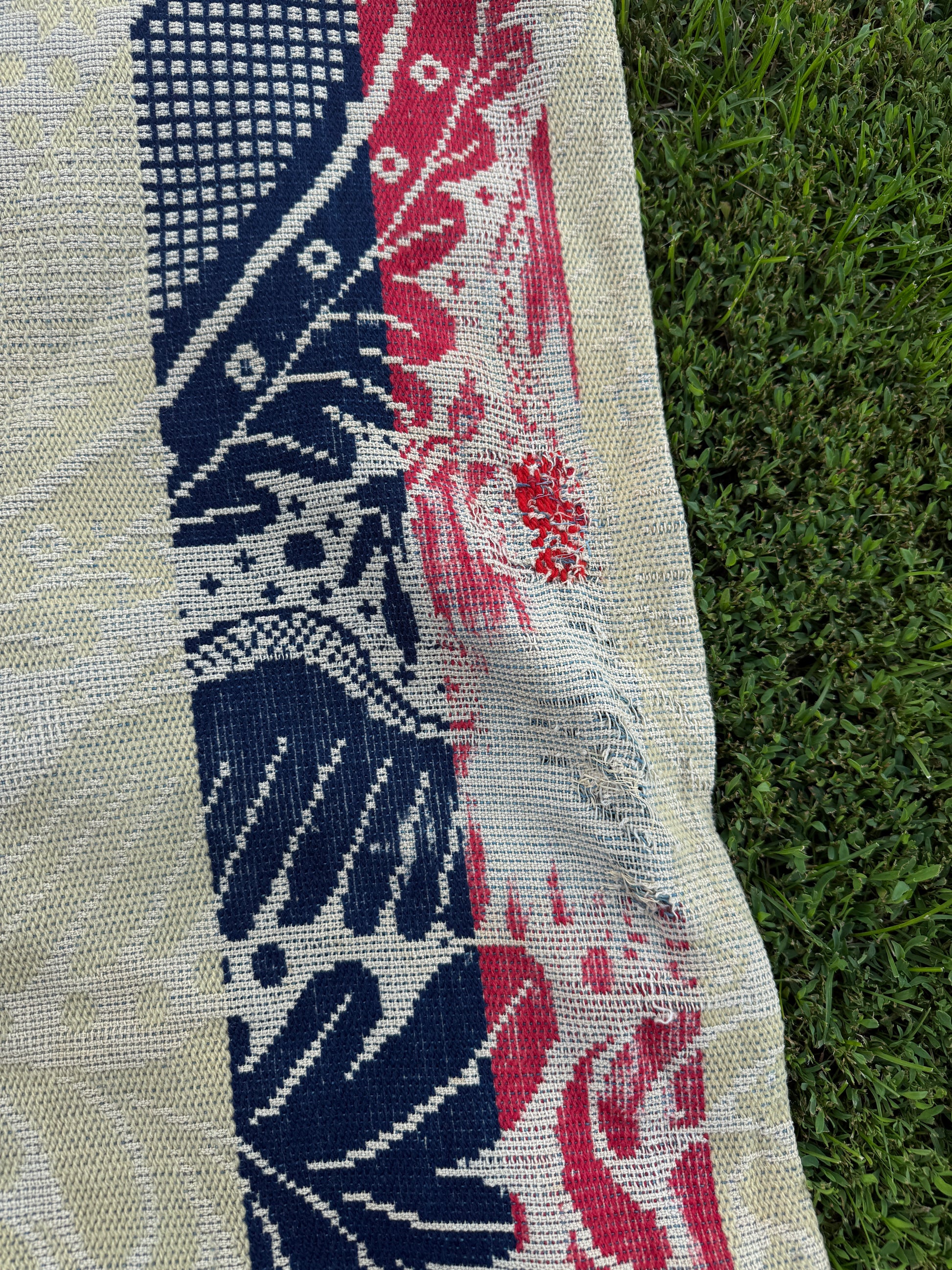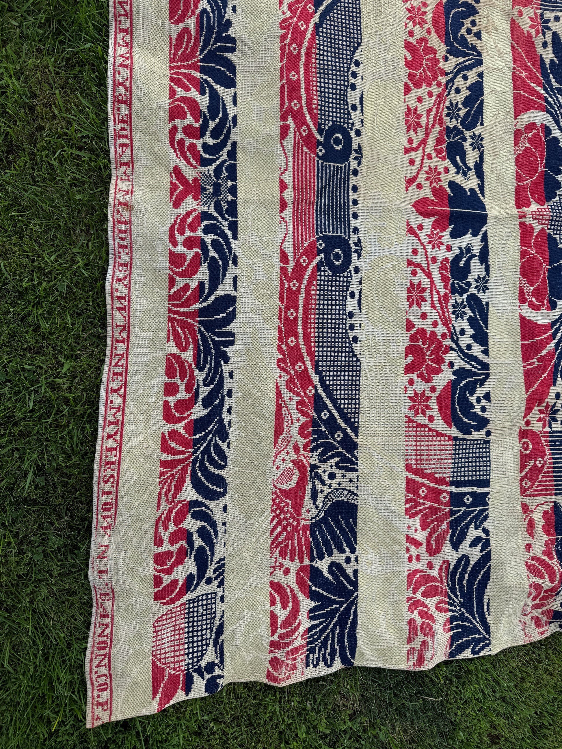 Mid-1800s (Red/White/Blue) Commissioned Coverlet - Made by M. Myers for N.J. Bandon Co. P.