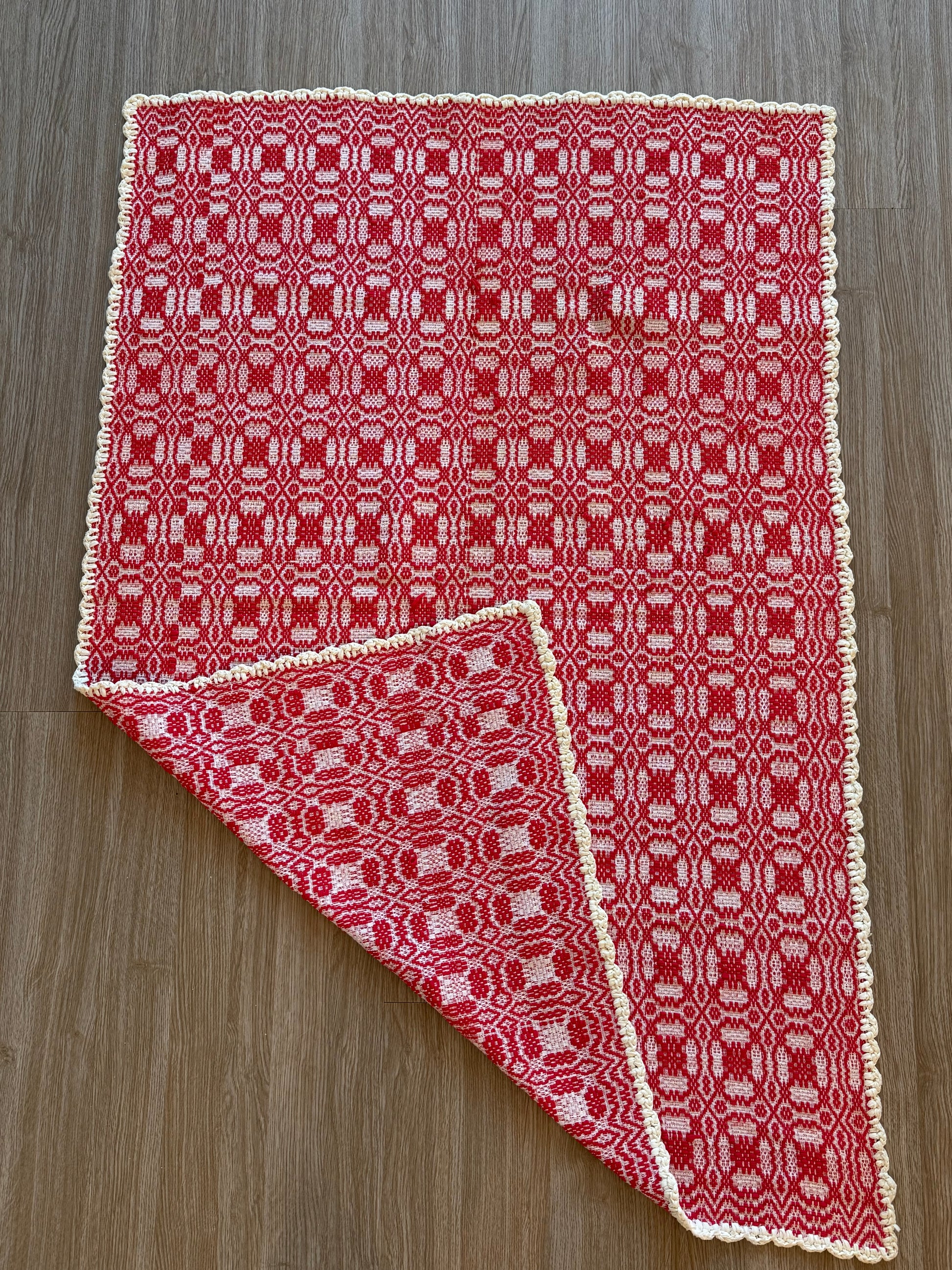 Red & Cream Reversible Antique Crib Coverlet