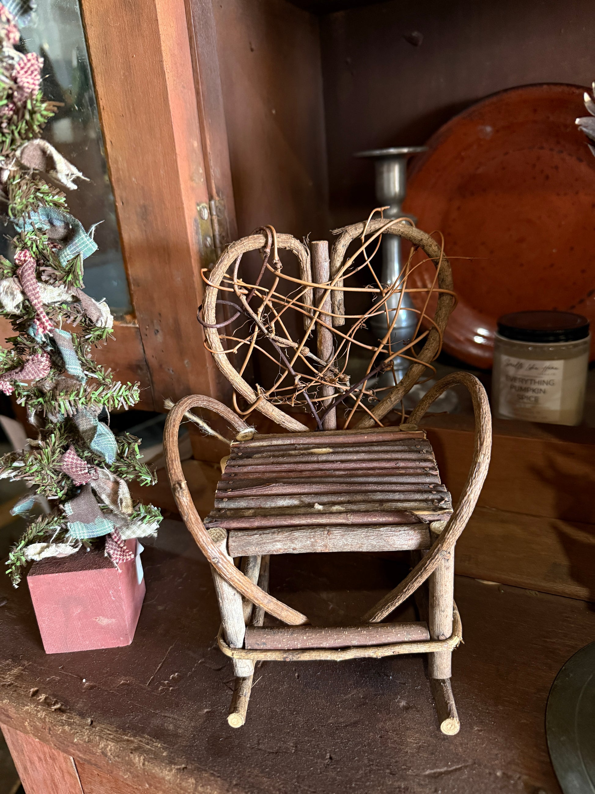 Primitive Santa with Tree & Twig Chair Set