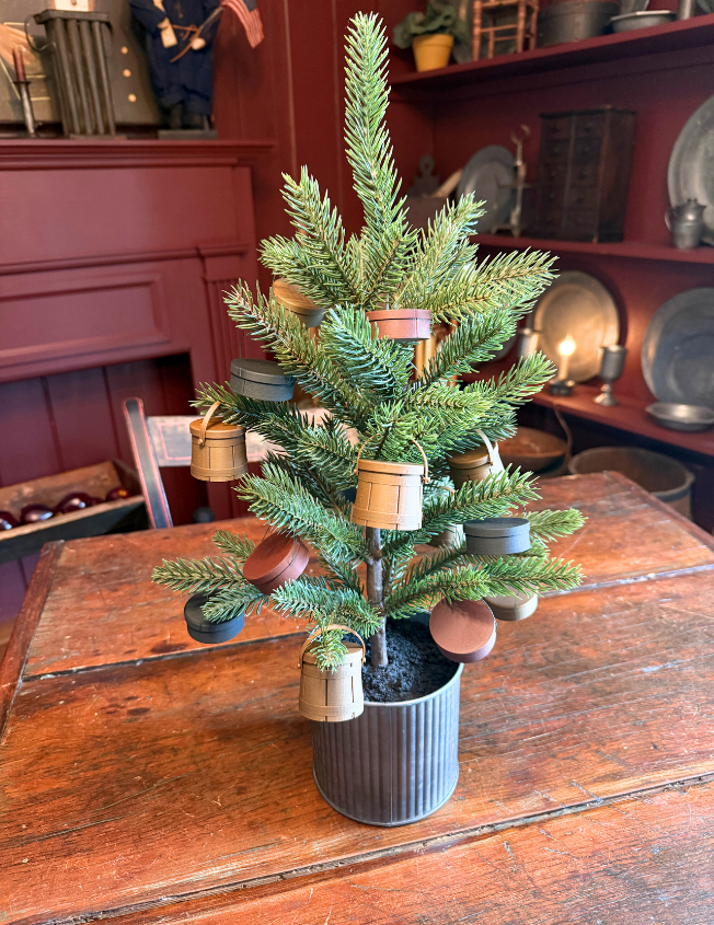 Our miniature pantry box ornaments are 1-3/4" dia. x 3/4" tall. You will receive 5 each of black, rosewood and walnut. Set of 15 Pantry Boxes includes shipping.